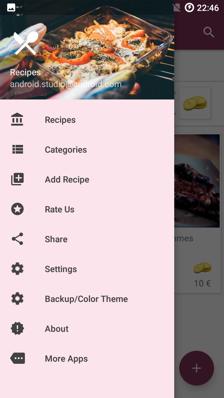 Yemek tarifleri uygulamasıyla kendi yemek kitabı oluşturun. Yalnız veya arkadaşlarınızla kolayca kendi tariflerinizi toplayabilirsiniz. Ayrıca, veritabanının bir kopyasını oluşturabilir ve / RecipesApp klasörüne kaydedebilirsiniz. Dolayısıyla, kendi yemek kitaptaki herhangi bir bilgiyi kaybetmezsiniz.
