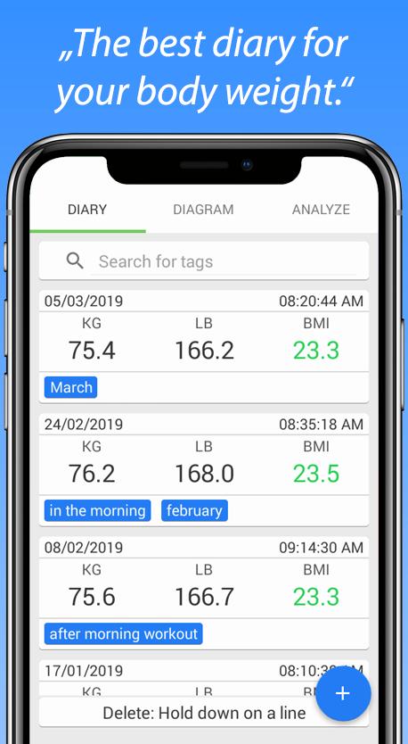 Bu kapsamlı Vücut Ağırlığı Günlüğü, vücut ağırlığınızı kaydetmeniz, izlemeniz ve analiz etmeniz için gereken tüm işlevleri sağlar.