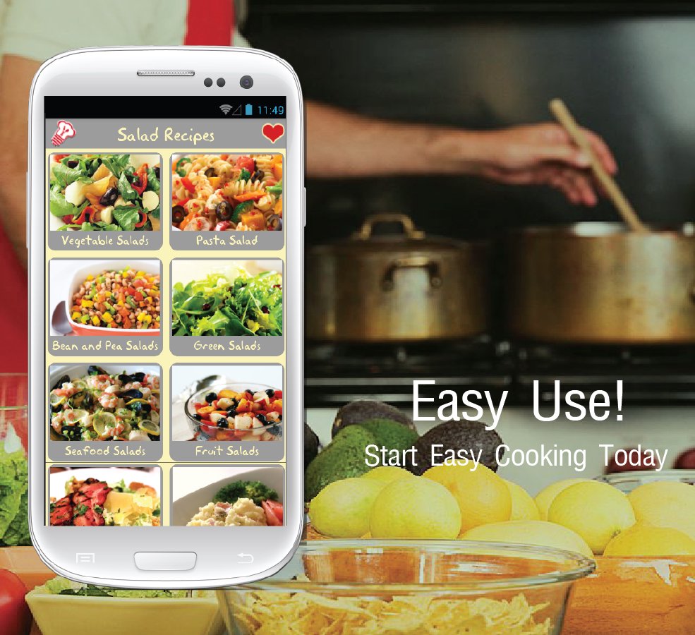 Ücretsiz, kolay ve lezzetli bir salata tarifleri sadece bir uygulama uzakta! Yeni tarifleri klasiklere, burada en iyi tatil salata sevindirdi bulabilirsiniz. Taffy Elma Salatası, Armut ve Nar Salatası, ve pek çok, çok daha fazla burada ve indirmek için hazır! Bu basit ve kullanımı kolay reçete uygulaması ustalıkla size aile ve arkadaşlar tekrar soracaktır salata harika bir koleksiyona getirmek için tasarlanmıştır. Waldorf salata, kiraz salata ve hatta portakal salata, ve daha fazlası!