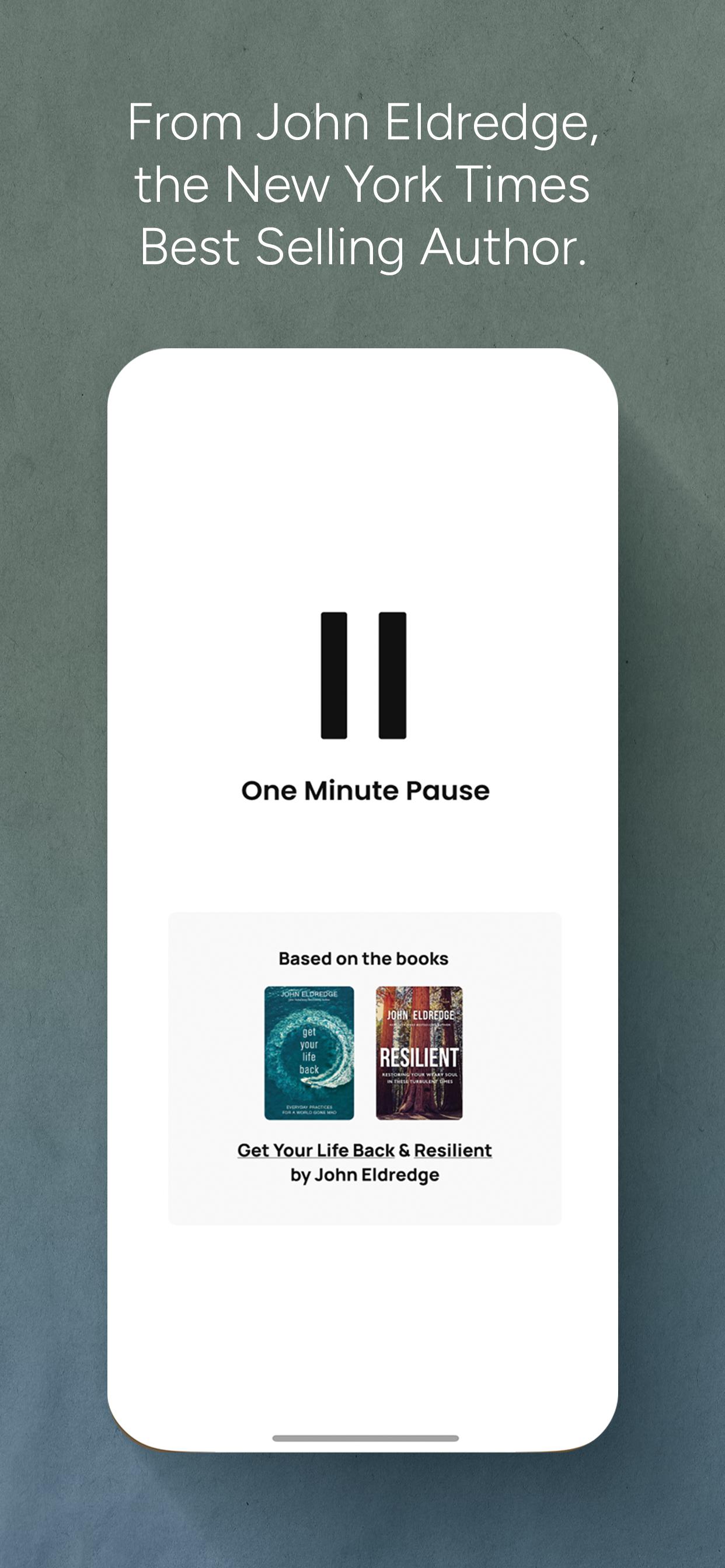 One Minute Pause Uygulaması, yoğun bir günün ortasında Tanrı ile yeniden bağlantı kurmanın basit bir yoludur. New York Times Çok Satan Wild at Heart and Captivating kitabının yazarı John Eldredge'den. Get Your Life Back adlı kitabının Bir Dakika Duraklatma uygulamasına ve son kitabı Esnekliğe eşlik eden 30 Günlük Dayanıklılık programına dayanarak, bu uygulama sizi Tanrı ile birliğinizi yeniden kurma ve onun istediği hayatı alma pratiğine davet ediyor. günlük size sunuyoruz.