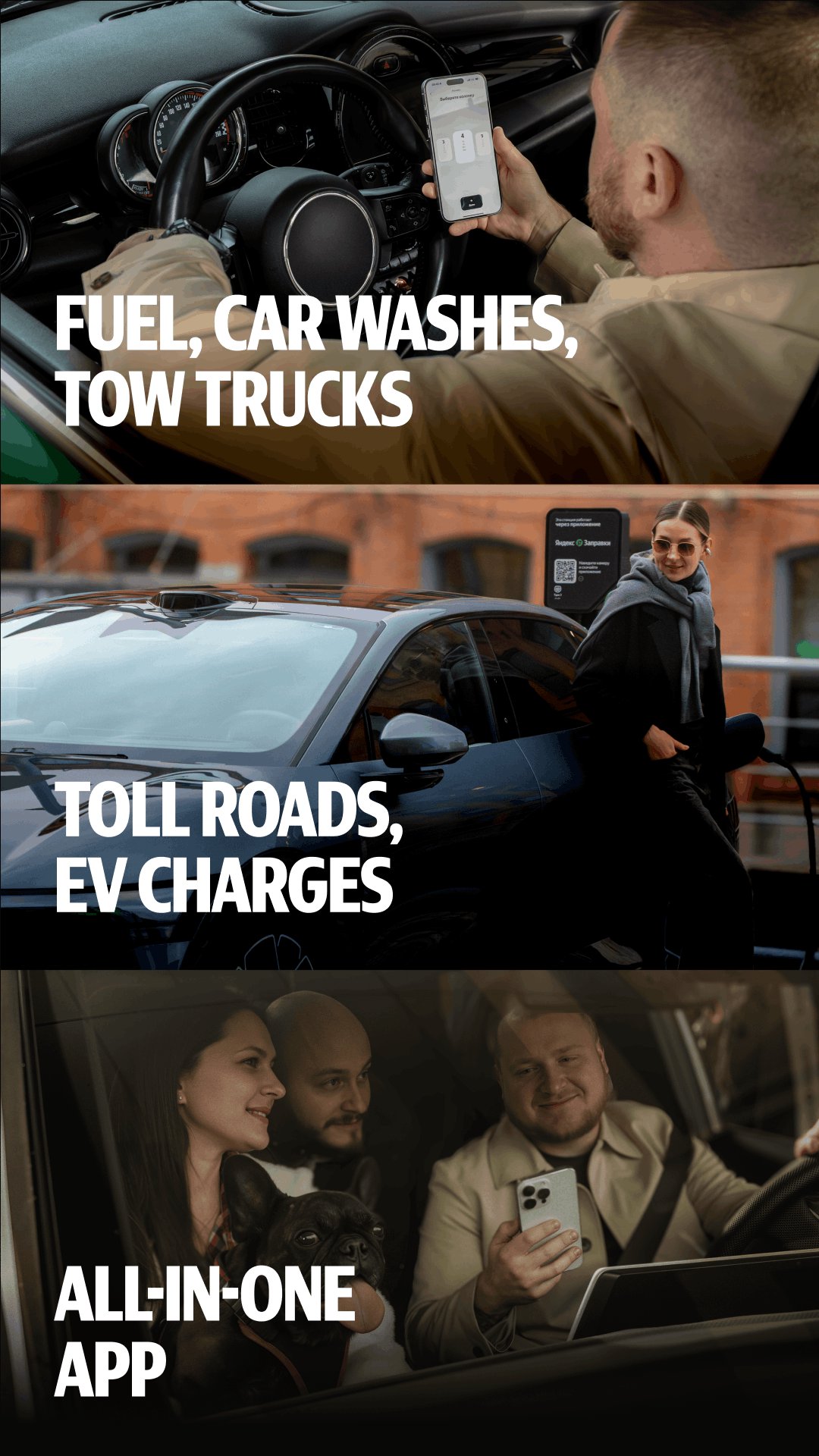 Yandex Fuels uygulamasını yükleyin ve tüm gerekli sürücü hizmetlerini tek bir uygulamada kullanın: benzin istasyonları, Orta Çevre Yolu (TSKAD) ve diğer paralı yollar için ödemeler, oto yıkama, çekici hizmeti ve şarj. Uygulama, zamandan tasarruf etmenize, otoyollarda ve şehir içinde rahatça seyahat etmenize, hızlıca yakıt doldurmanıza ve yakıt için kolayca ödeme yapmanıza yardımcı olur.