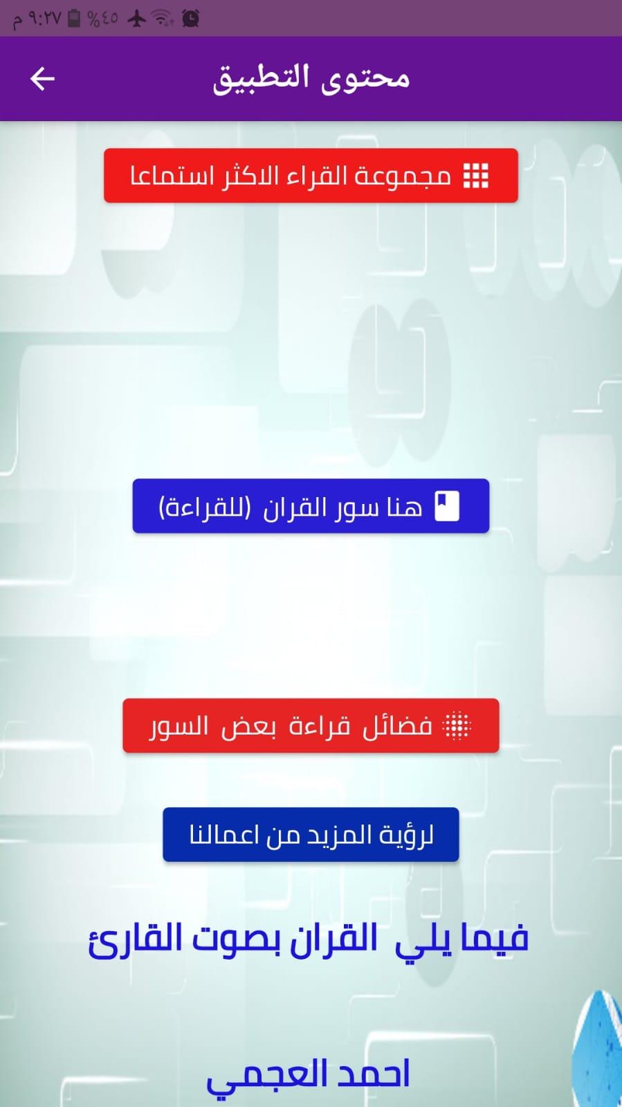 salah mohammad geliştiricisinden gelen القران بصوت جميع القراء, geçmişte Android systerm üzerinde çalışıyor.
