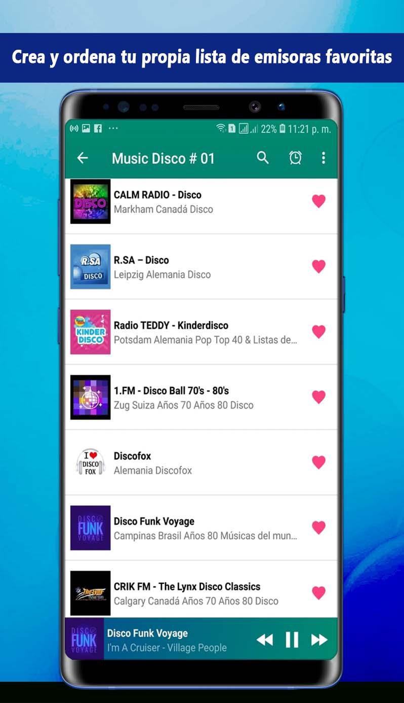 70'li ve 80'li yıllardan kalma disko müzik, modern, zarif ve kullanımı kolay bir arayüze sahip canlı bir radyo uygulamasıdır, uygulama size disko müzik canlı radyo dinlerken en iyi deneyimi sunar.