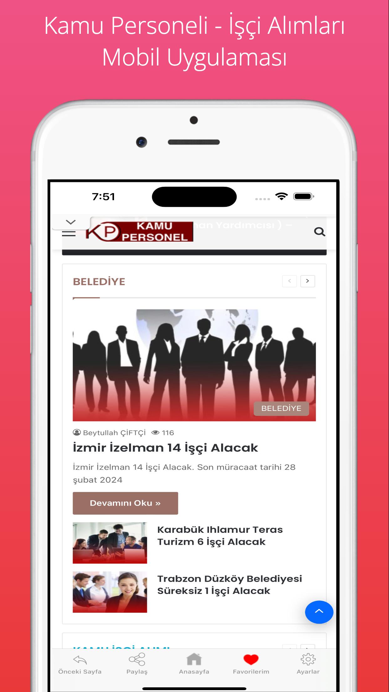 Uygulamamız ile Kamu Personeli ve İşçi Alım Haberlerine ulaşabilirsiniz.