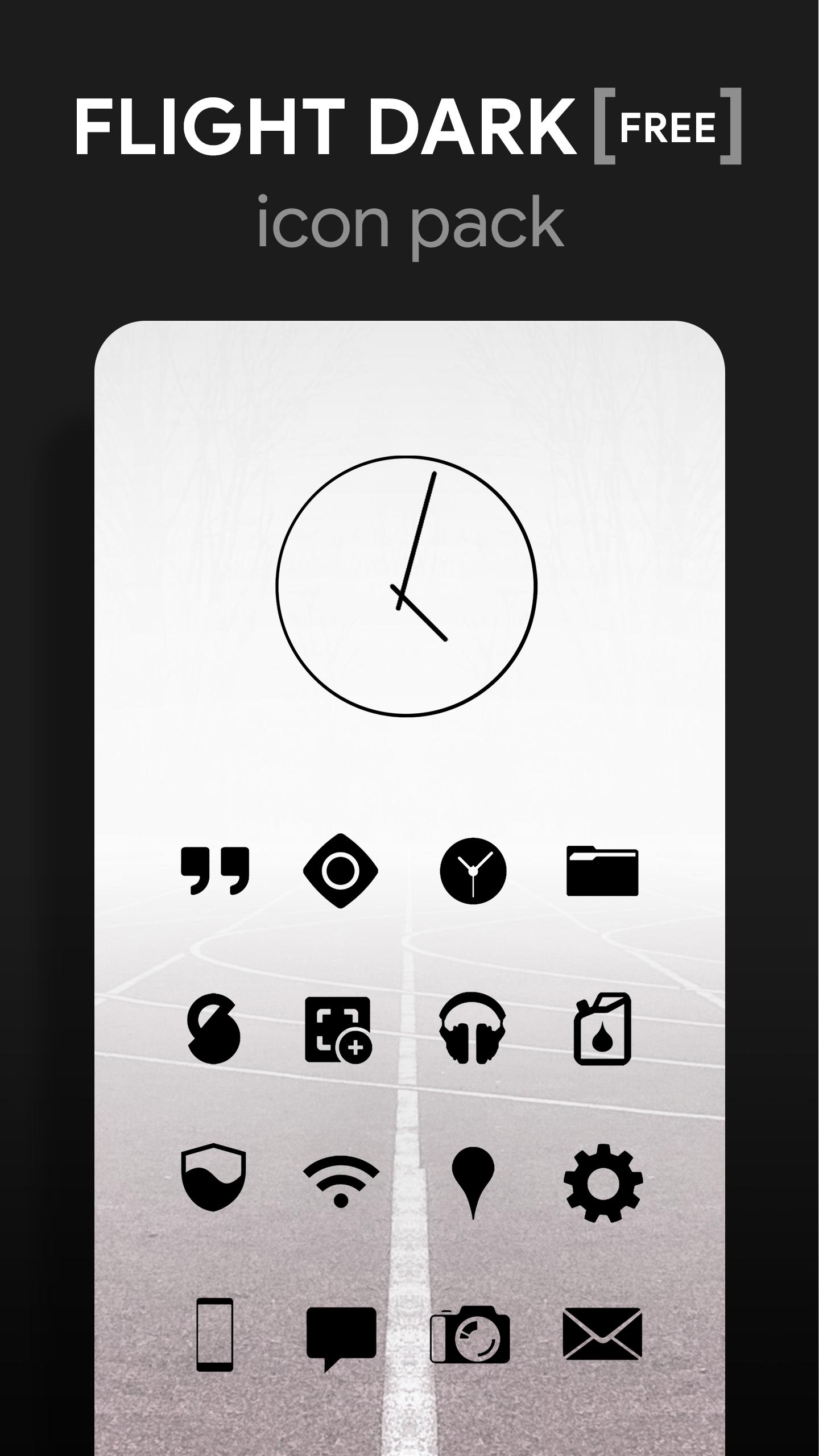 Nate Wren Design geliştiricisinden gelen Flight Dark - Icon Pack, geçmişte Android systerm üzerinde çalışıyor.