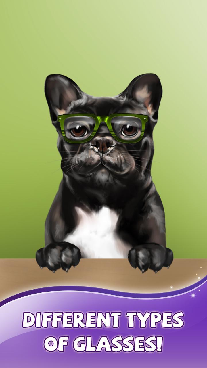 Come one, come all, we have “virtual pet puppies” for everybody! Download ☻ French Bulldog Live Wallpaper ☻ and spend hours having fun with man's best friend! Did you always want to see dogs playing poker? Set the background image to a poker room, dress up your doggy like a poker player, hide it behind the dark glasses, and voila! Toddlers and kids, boys and girls, even adults will adore this cute animal dress up game and wallpaper! One look at its puppy baby eyes and you will fall in love with it! This adorable black french bulldog is a life companion – take your new best dog live wallpapers everywhere with you! Play with the lovely pup, change its glasses and necklaces, choose your favorite background – you won't ever be bored with this amazing puppy live wallpaper and interactive dress up game!