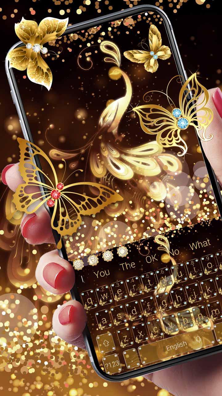 altın glitter kelebek klavye harika 3D efektleri olan bir 3D düğme görüntüsüdür. altın glitter kelebek ayrıca telefonun arka planını ayarlaman için birçok güzel altın glitter kelebek duvar kağıdı içeren bir klavyedir.