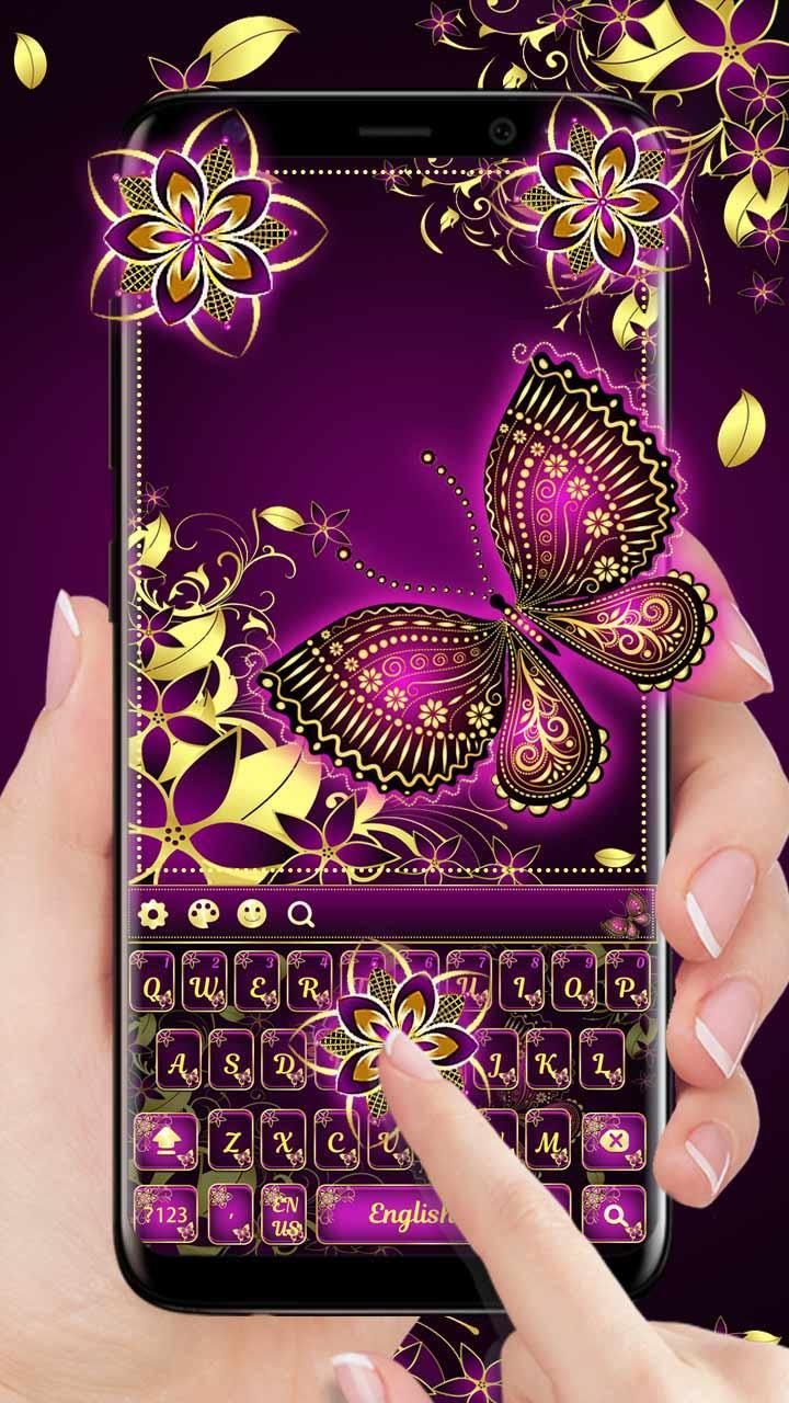 3D Keyboard Theme geliştiricisinden gelen Mor Altın Kelebek Klavye, geçmişte Android systerm üzerinde çalışıyor.