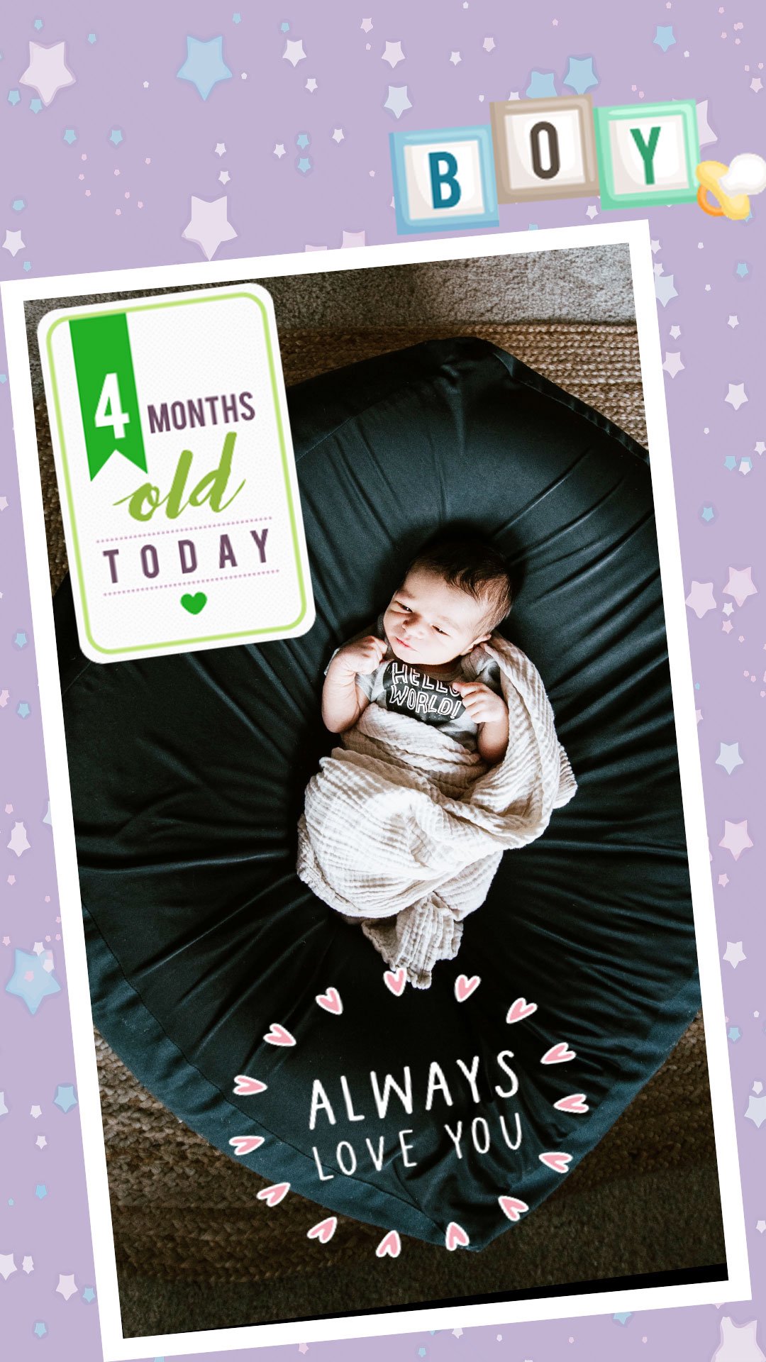 Fotoğraf montaj uygulamamızın yardımıyla bebek fotoğraflarınızı sanatlara çevirin. Güzel bebek resimleri oluşturmak ve onları herkesle paylaşmak için bebek kilometre taşlarımızı kullanın! Bebek aylık çıkartmalarıyla resimlerinizi düzenleyin ve onlara gerçekten benzersiz bir dokunuş verin.