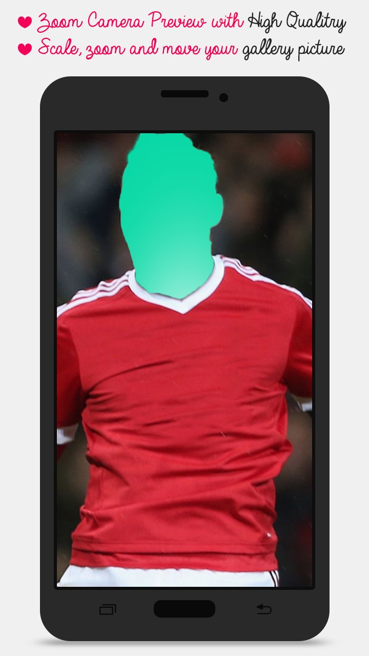 Bu muhteşem uygulama ile yüzünüzü çeşitli Futbol Futbol Fotoğraflarına yerleştirebilirsiniz. Futbol Futbol Fotoğraf Suiti uygulamasında deneyebileceğiniz birçok takım elbise var. Sadece tek bir tıklamayla çok çeşitli takım elbiseleri üzerinizde deneyebilirsiniz.