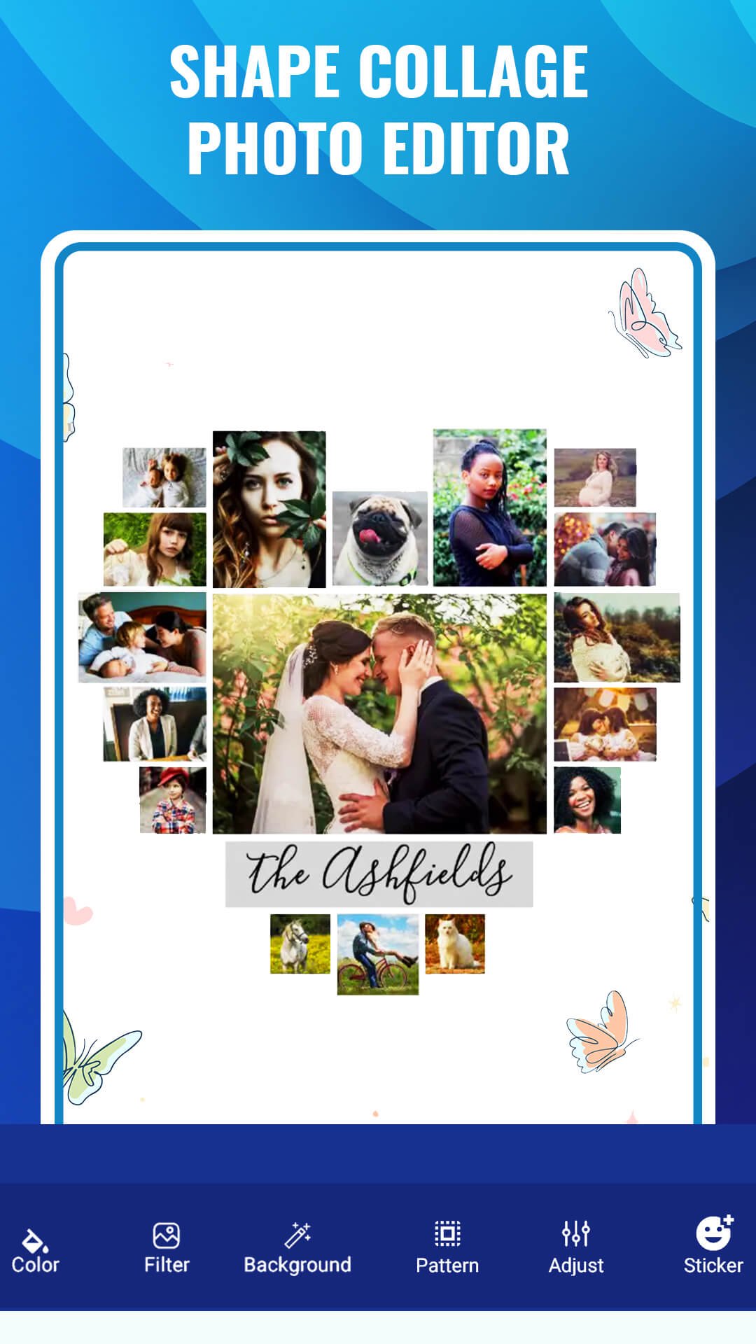 Şekil kolajı fotoğraf düzenleyicisi, birkaç saniye içinde farklı şekillerde kolajlar oluşturmanıza olanak tanıyan otomatik bir fotoğraf kolajı oluşturucusudur. Kalp, kuş, elma, kelebek, 100'den fazla şekil şeklinde resim kolajları yapabilirsiniz. Herhangi bir şekilde güzel ve benzersiz bir şekil kolajı yapmak için Şekil kolajı resim düzenleyici uygulamasını kullanın. Ayrıca kolaj için 50'den fazla arka plan arasından kolajın arka planlarını da seçebilirsiniz.