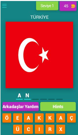 199 adet bayrak bulunan oyunumuzda bayrakların hangi ülkeye ait olduğu yazılmış ve sizlere ülkelerin başkentleri sorulmuştur.