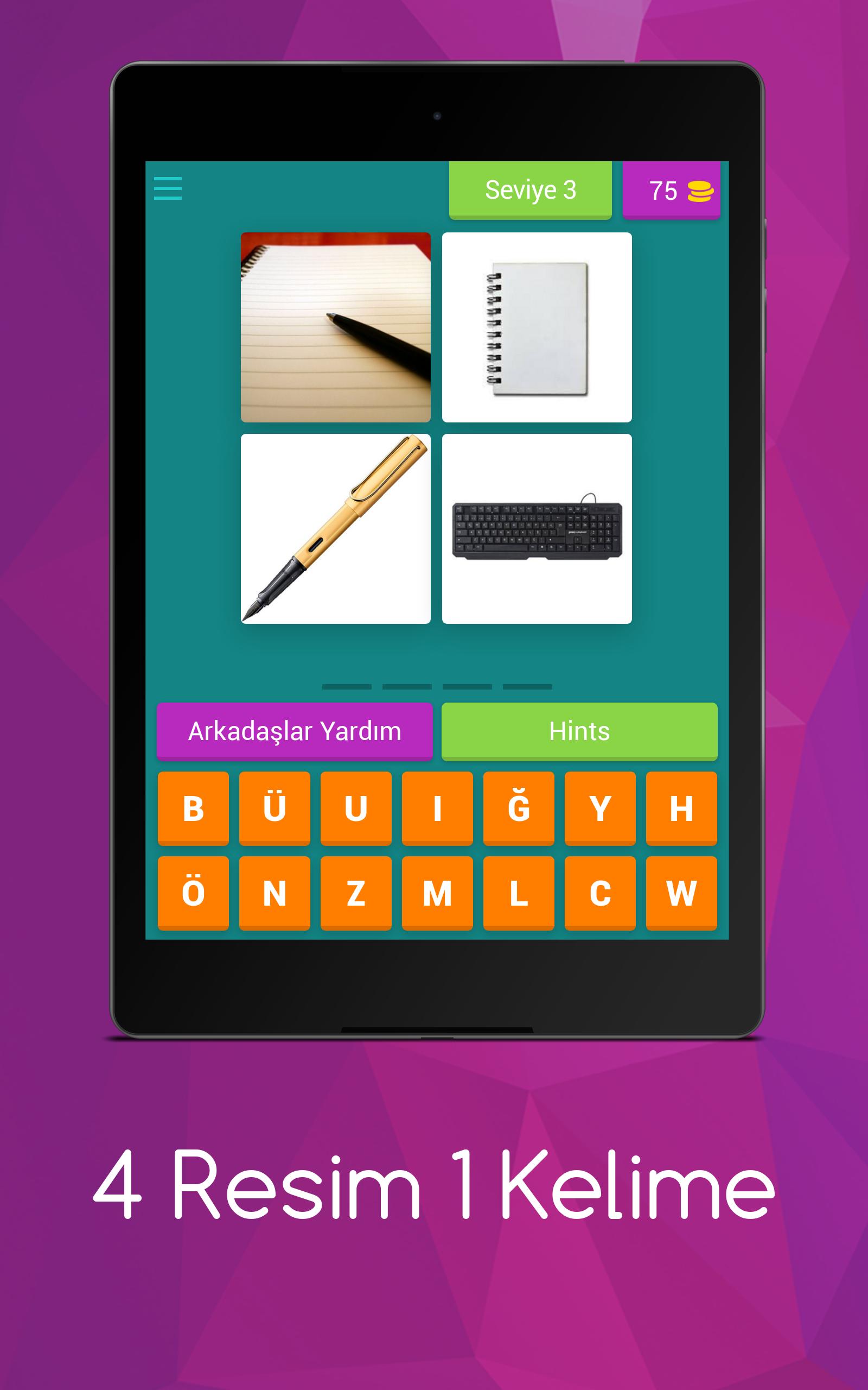 Mustafa-Kacaroğlu geliştiricisinden gelen 4 Resim 1 Kelime, geçmişte Android systerm üzerinde çalışıyor.