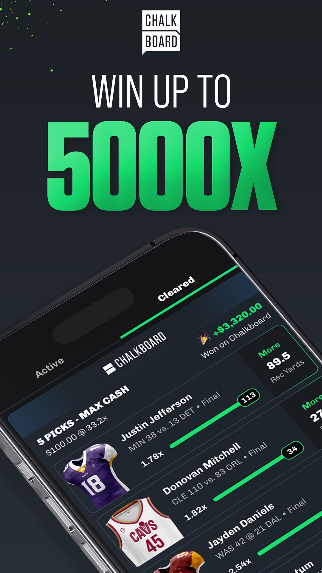 Favori oyuncularınızın tahmini istatistik çizgilerinden daha fazlasını veya daha azını seçerek paranızın 5.000 katına kadar kazanın! NFL, NBA, MLB, NHL, Üniversite Sporları, Futbol ve yakında daha fazla spor dalı.