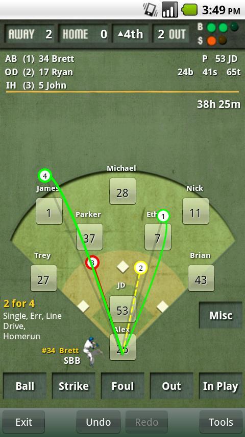 iScore Sports, Inc. geliştiricisinden gelen iScore Baseball/Softball, geçmişte Android systerm üzerinde çalışıyor.