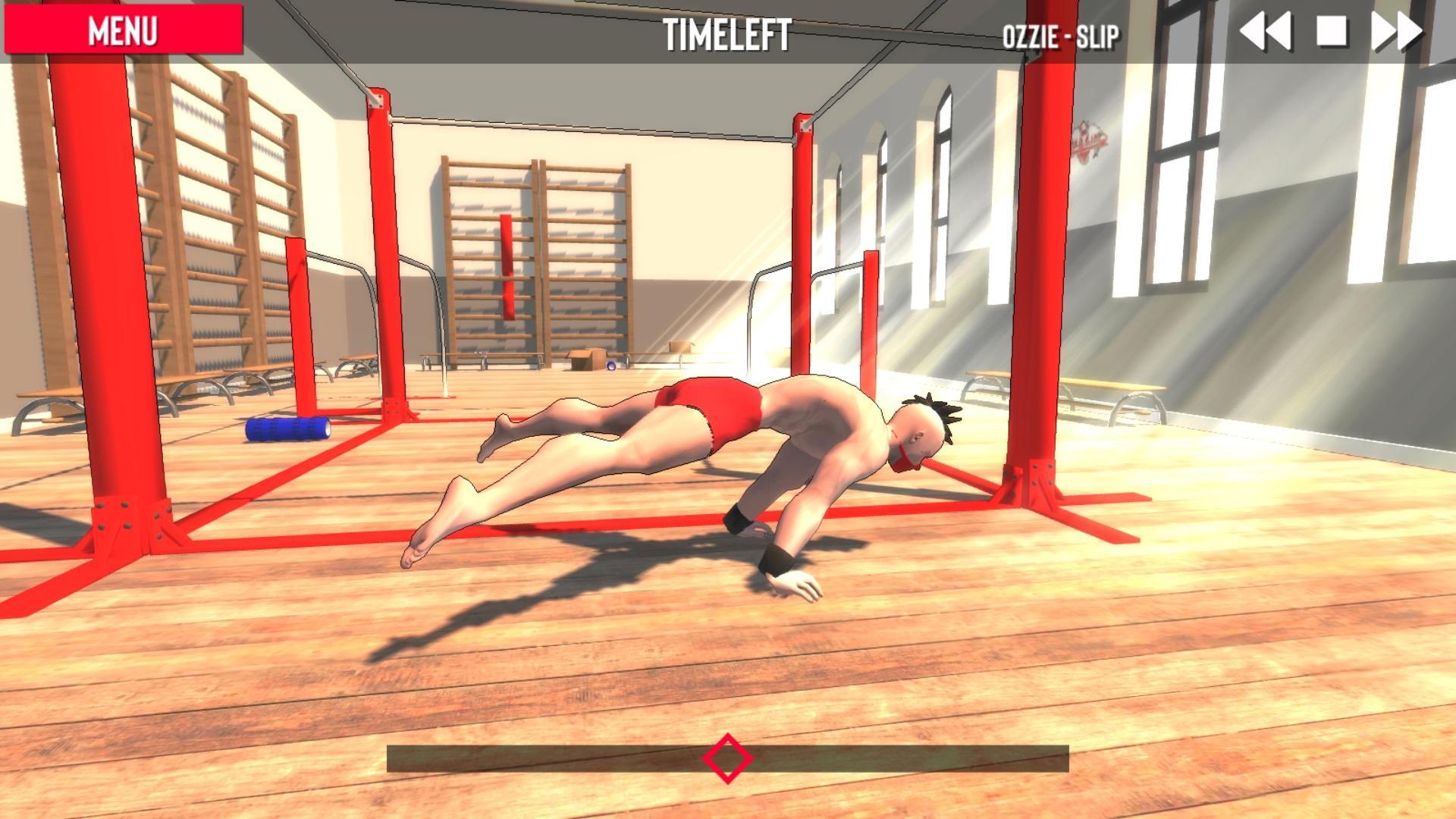 Oyunun ilk aşaması, bir sonraki aşamada vücut geliştirme gibi bir şey inşa etmek için amuda, frontlever, backlever, swing360, swing540, zencefil çevirme, bar üzerinde atlama ve daha birçok gibi elemanlar öğrenme olacak.