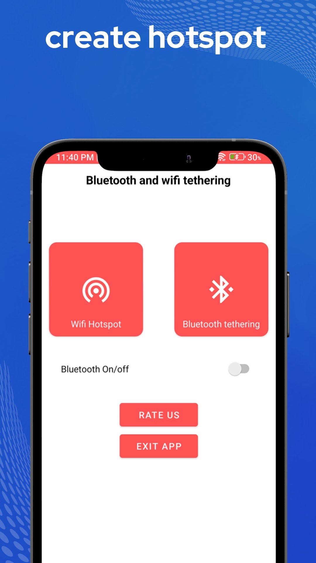 Bu uygulama sizi doğrudan Bluetooth ve Hotspot ayarlarına götürür veya uygulama ayarlarını açarak bu uygulamayı kullanarak usb kablosu olmadan interneti paylaşabilirsiniz.