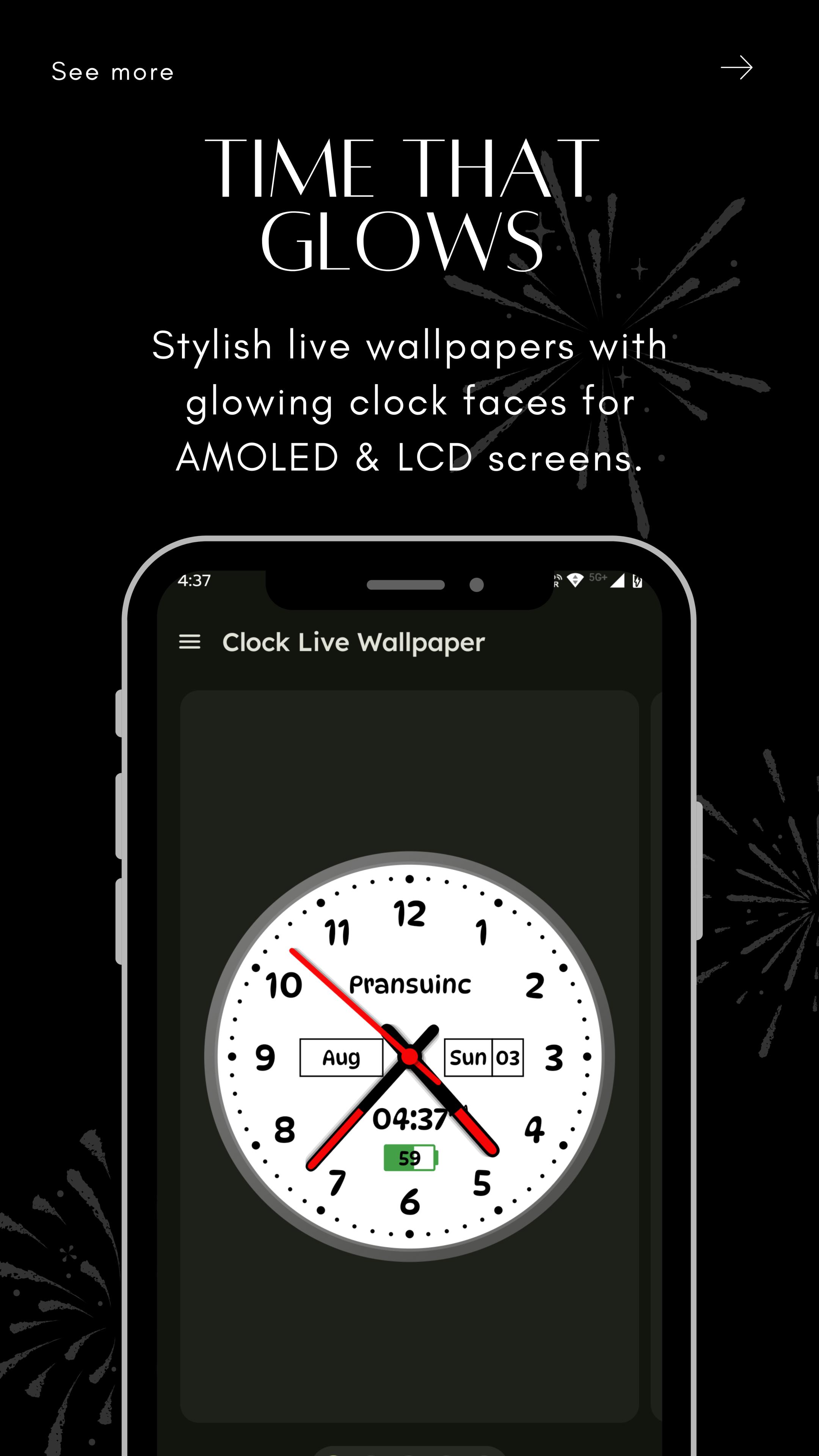 Uygulamamızla analogdan dijitale kadar çok çeşitli saat stilleri arasından seçim yapabilir ve bunları kolayca canlı duvar kağıdınız veya ekran koruyucunuz olarak ayarlayabilirsiniz. Uygulama aynı zamanda yeni saatinizle eşleşecek özel duvar kağıtlarından oluşan bir koleksiyona sahiptir ve cihazınıza eksiksiz ve uyumlu bir görünüm kazandırır.