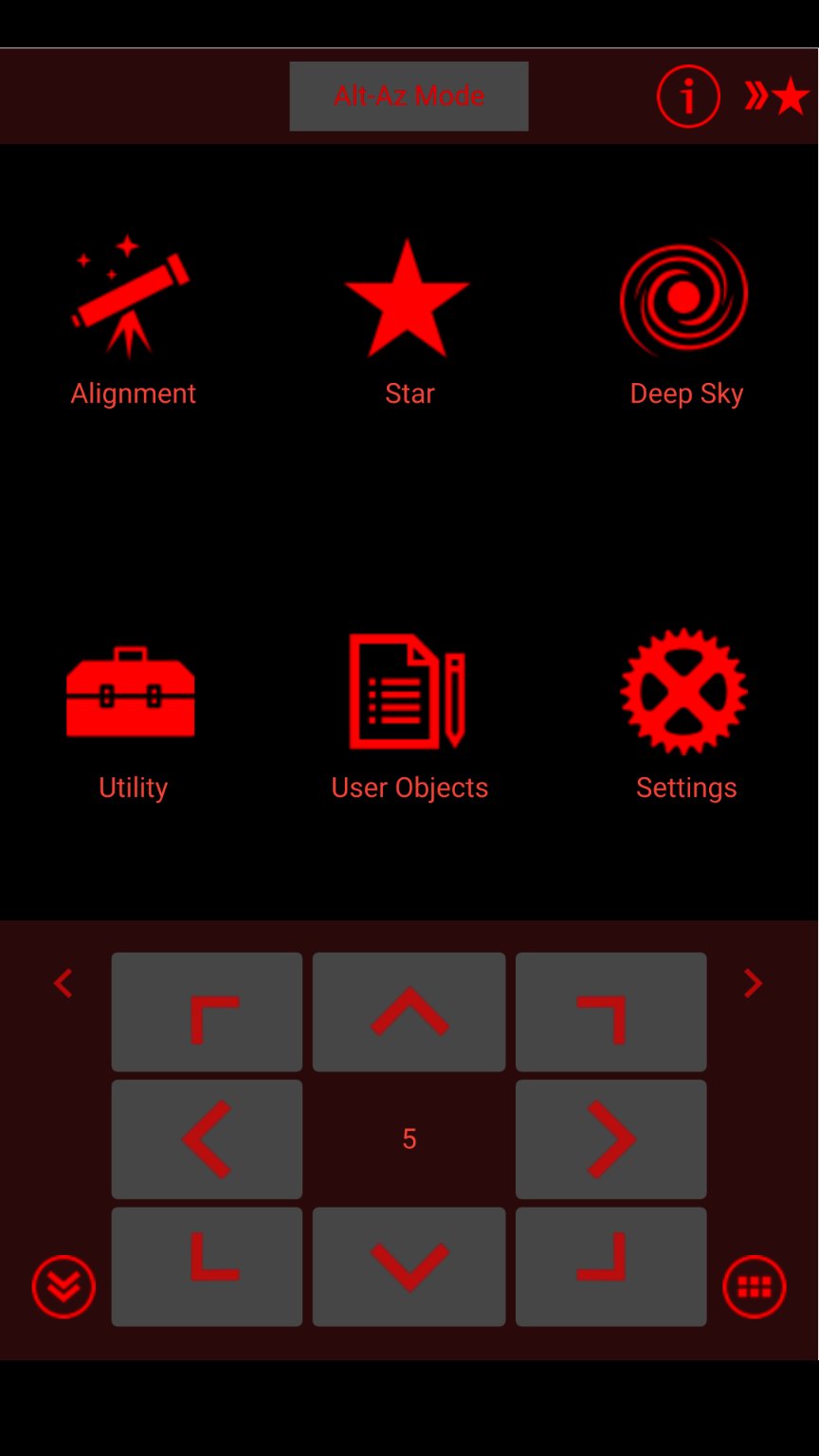 SynScan uygulamasının bu sürümü, alt azimut yuvalarını kullanan acemi kullanıcılar için uygundur.