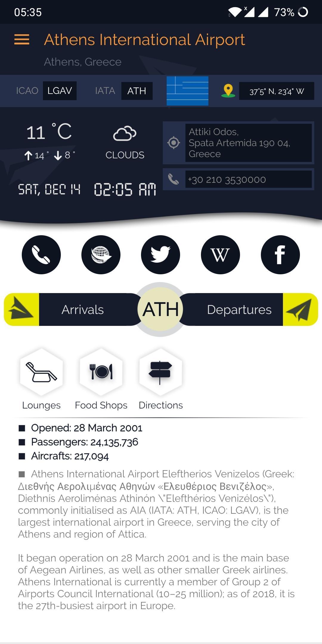 Bu uygulama ATH havaalanı için derinlemesine bilgi sağlar.