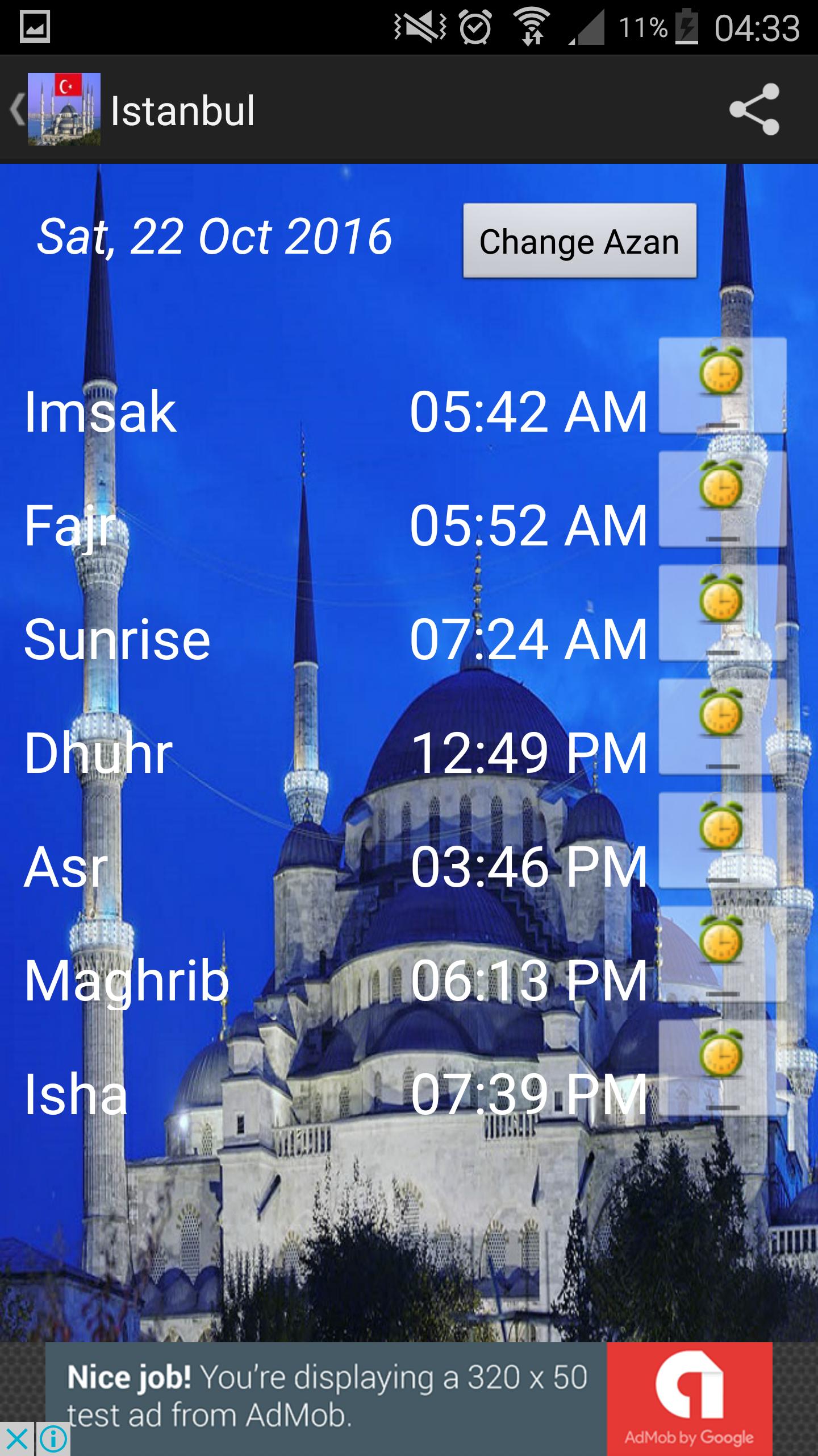 ★ 22 Ezan alarmları ve hatırlatmaları olarak verilmektedir