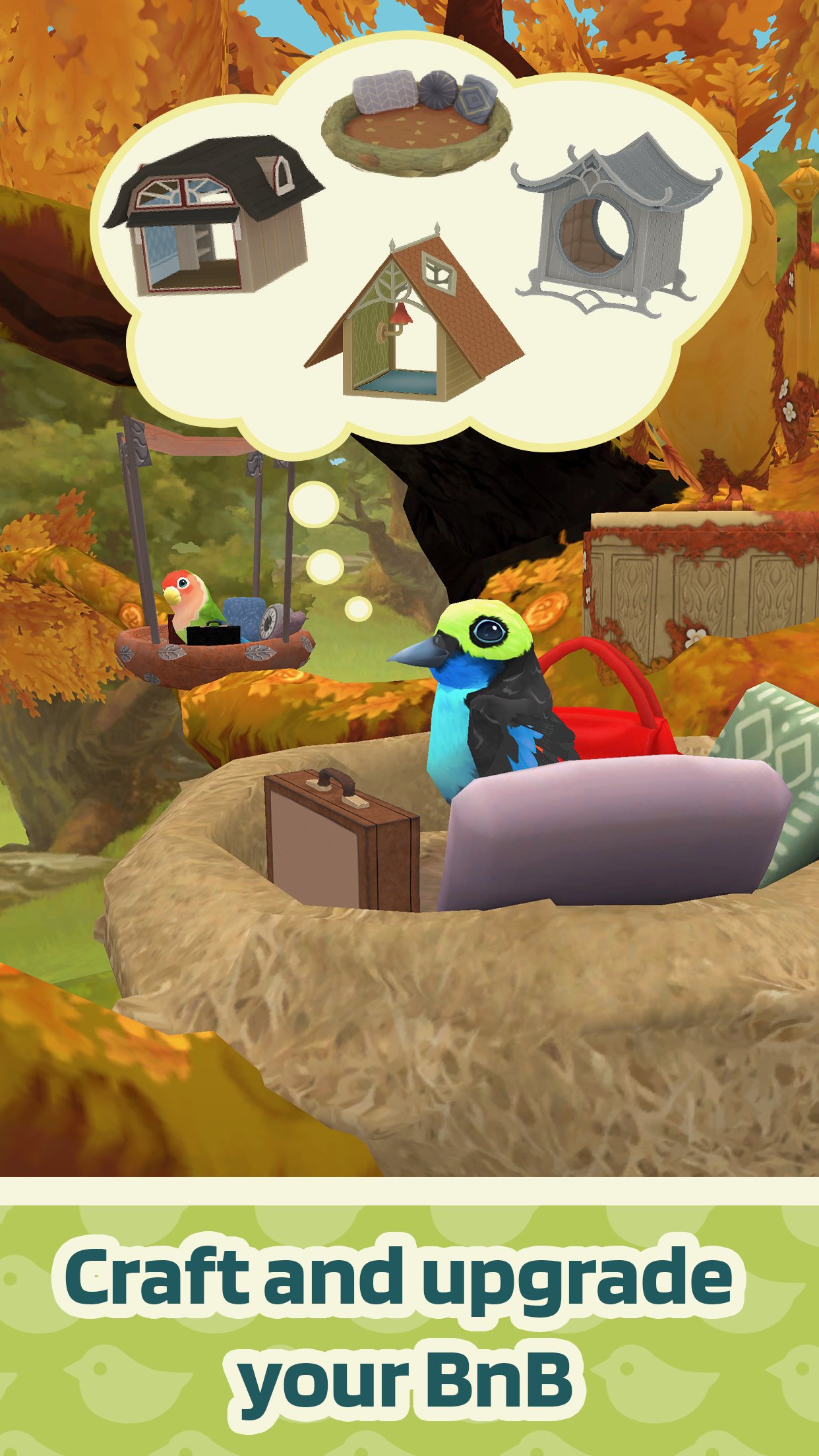 El işi yapın, sevimli ağaç evinizi tasarlayın, bahçenizde yiyecek yetiştirin, sevimli misafirlere bakın ve 5 yıldızlı derecelendirmeler kazanın. Dereceniz yükseldikçe daha fazla odanın kilidini açarsınız ve dünyanın dört bir yanından daha fazla sevimli kuş çekersiniz. Biraz daha eğlence için AR moduna (Artırılmış Gerçeklik) geçin ve sanal evcil hayvan arkadaşlarınızın kendi evinizde ve çevresinde belirdiğini görün!