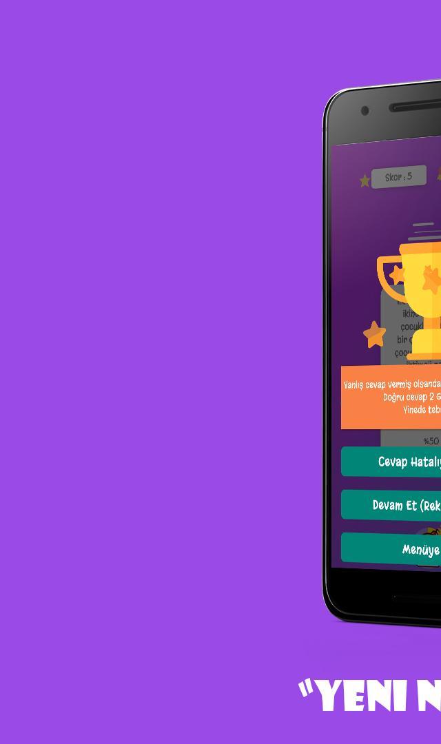 4 şıklı sorulardan sıkıldıysan buraya gel.Ya bilgini konuştur ya da tahminini konuştur.Hiç olmadı %50 şansını ortaya çıkart.Hepsi senin için.