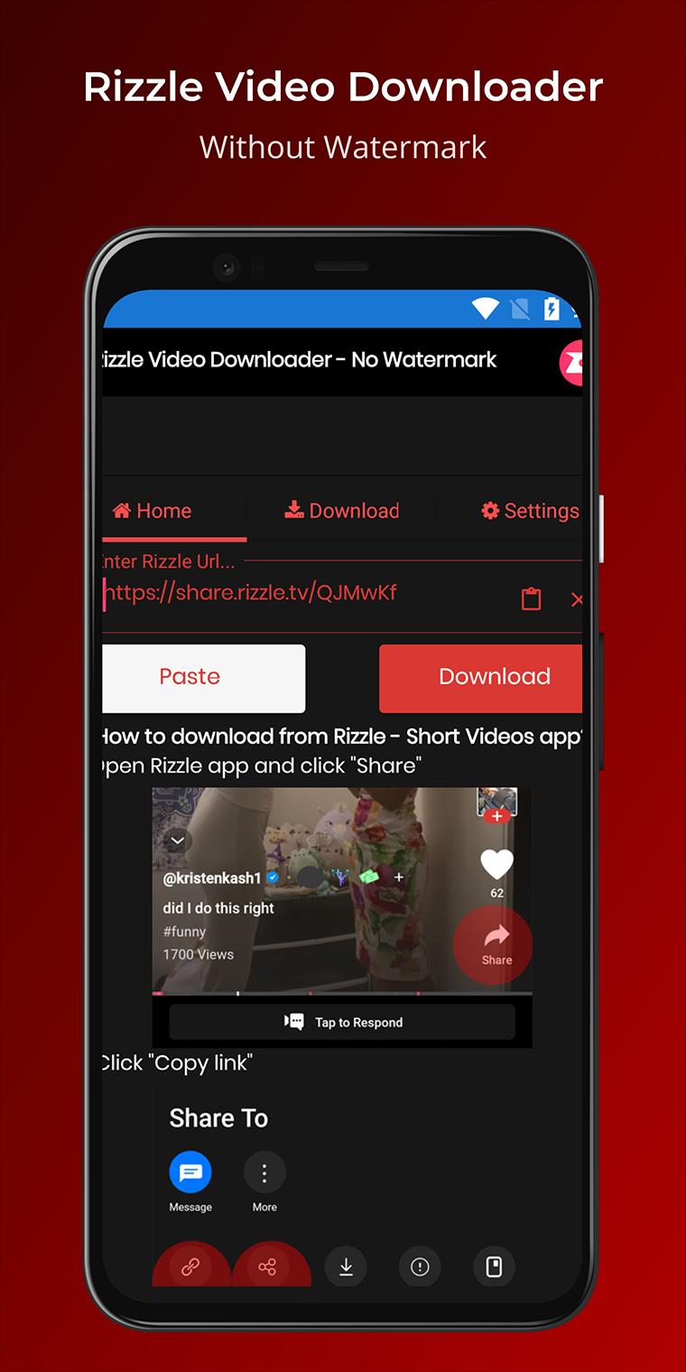 1. Share link from Rizzle app and select Rizzle Video Downloader app from list