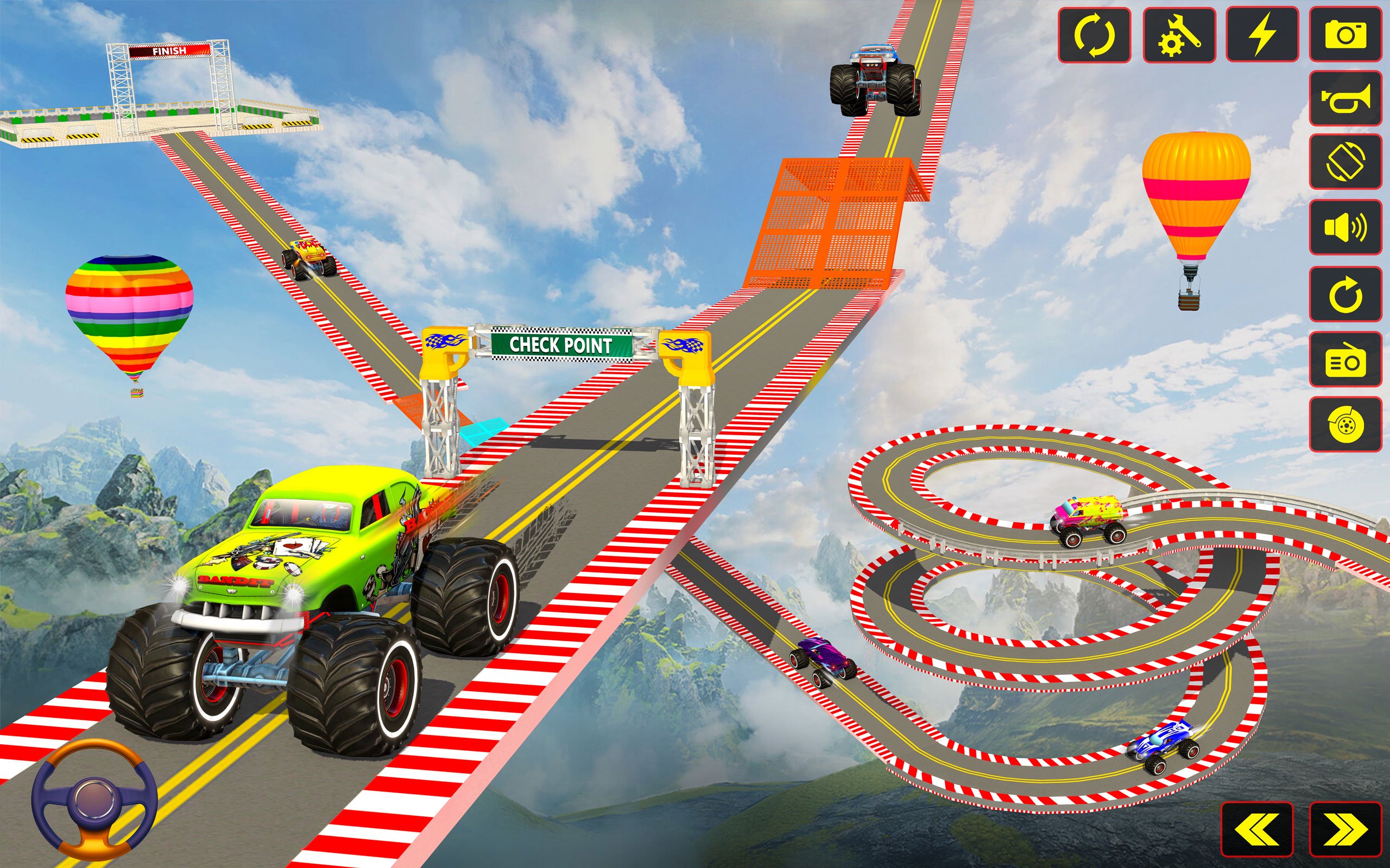 Monster Truck Ramp Stunt Games, canavar araba oyuncuları için özellikler.