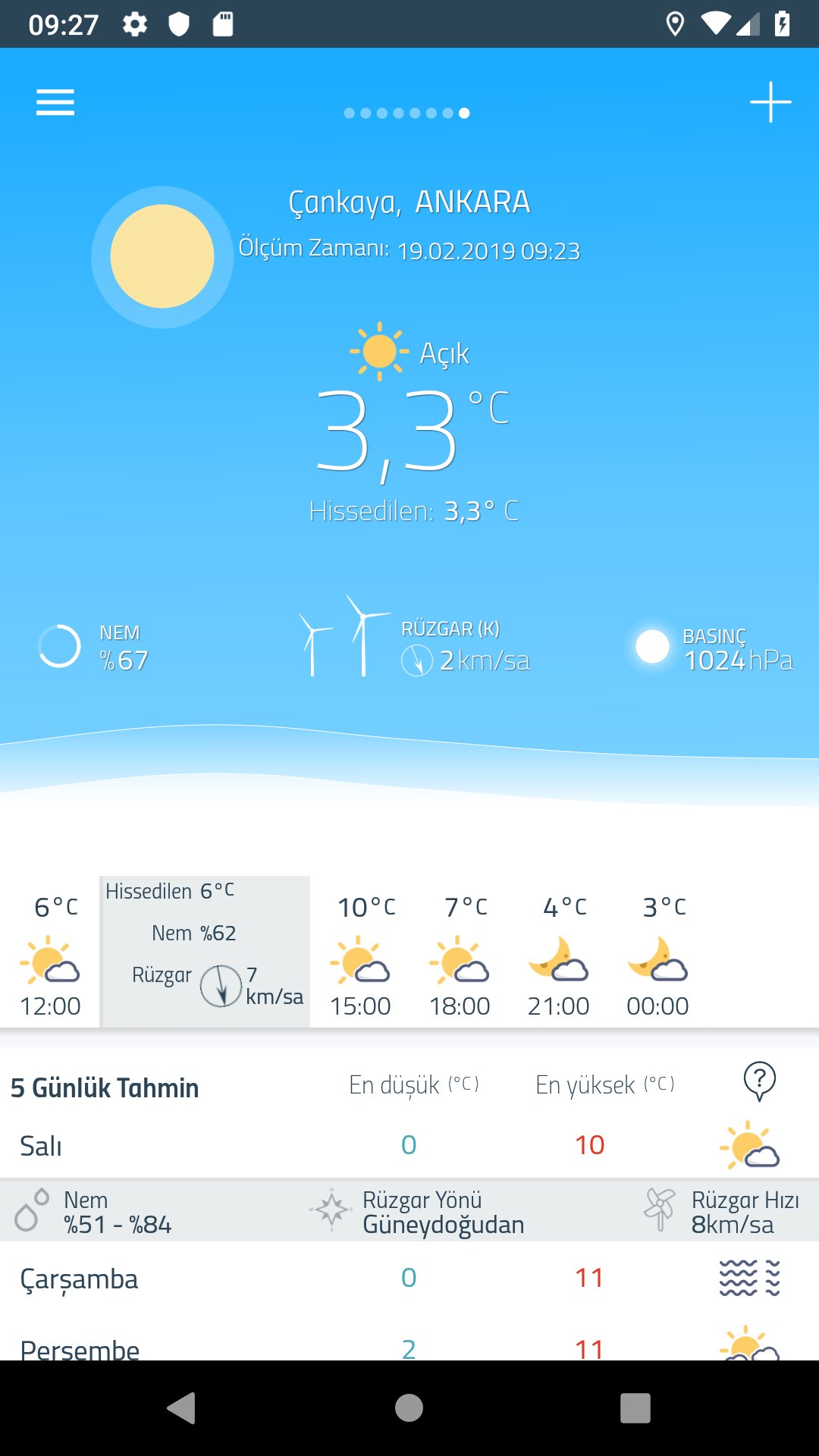 - GPS üzerinden hesaplanan en yakın merkezin hava durumu ve tahmin bilgileri