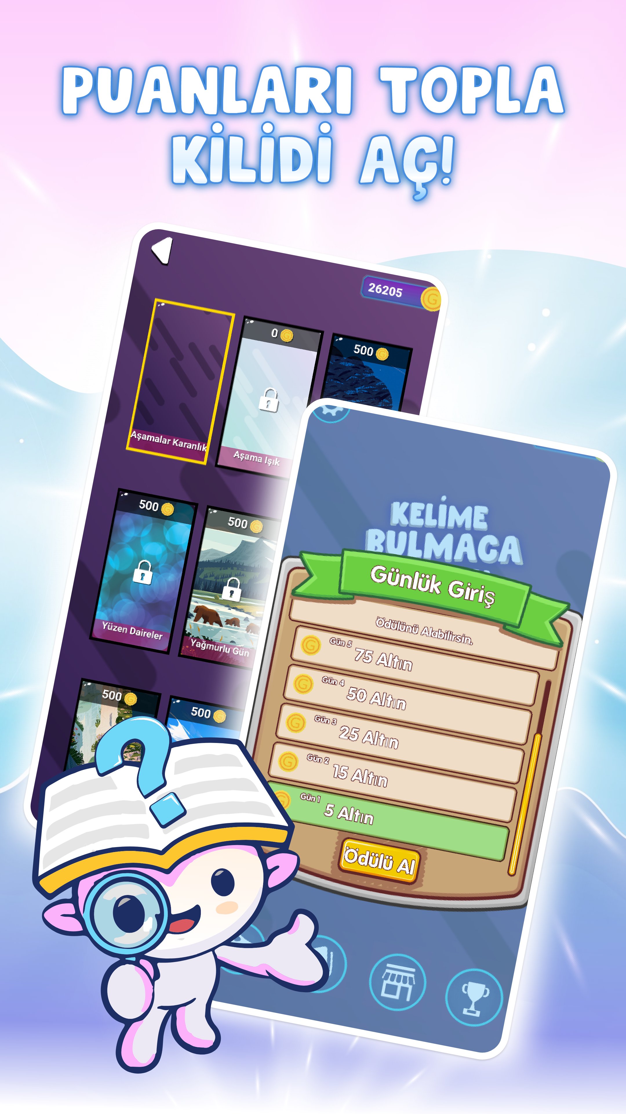 * Takıldığın bölümlerde kelimeleri bulabilmen için özel jokerler,