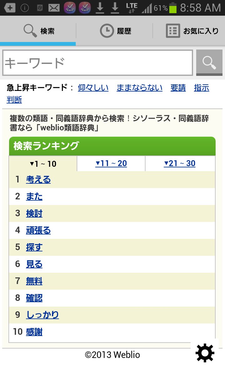 搜尋一旦詞庫和詞典詞庫,詞庫Weblio是同義詞的搜索應用程序。