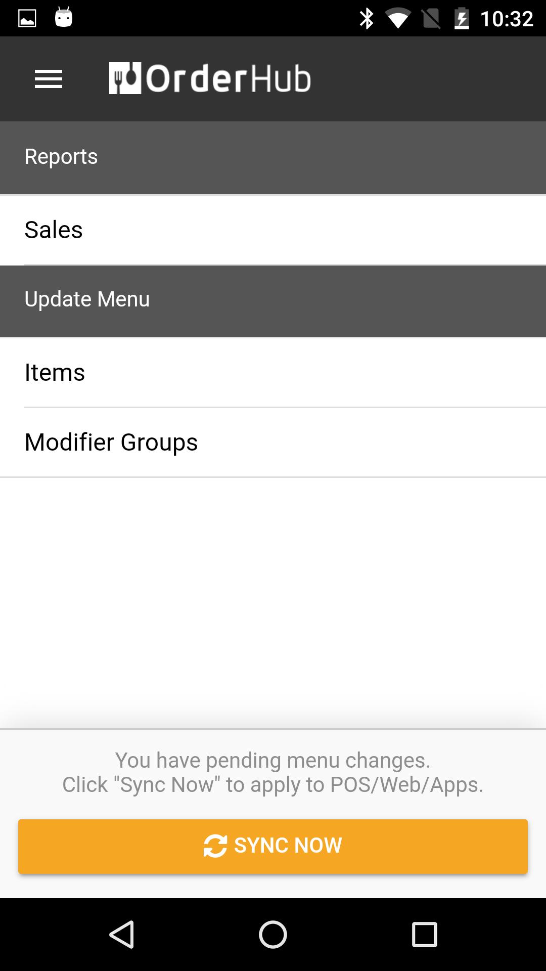 OrderHub Back Office app allow you to easily update your menu and view your sales. Menu changes are automatically synced to your OrderHub Point of Sale system and connected apps/website (depending on which services you are using). It's the simple way.