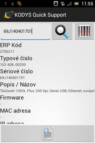 KODYS Quick Support is an application intended for getting device details which were bought at KODYS SLOVENSKO, s.r.o. company. After scanning or entering the device serial number, application will show you device details such as part number, device name and its details. After touching the Quick Support button, application will find and show you simple quick help page for the current device such as error messages and their clearing.