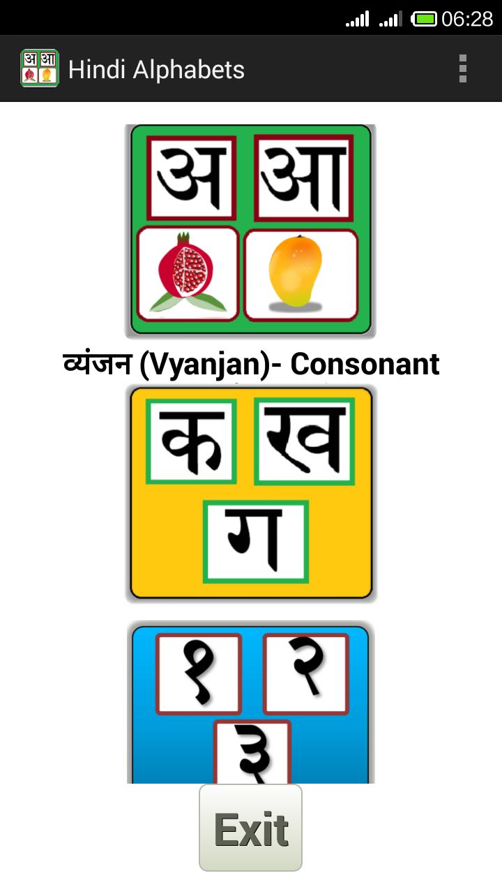 印地文元音(SWAR)和輔音(Vyanjan) - 實施的與在此應用程序的圖片。