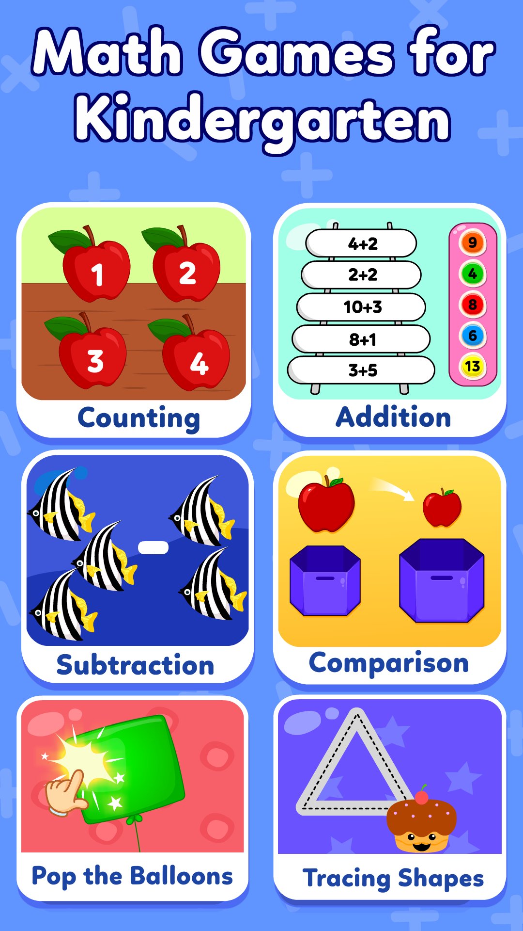 通過有趣和具教育性的遊戲和可愛卡通來學習加法和減法!