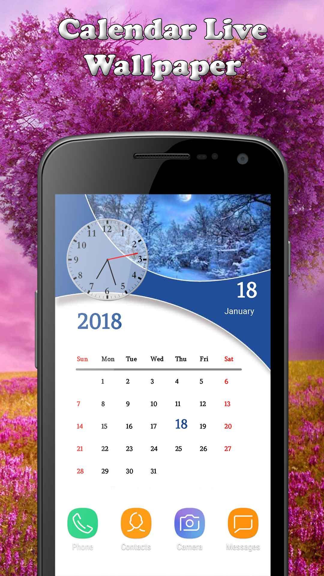 Calendar Live Wallpaper and Display Analog clock on device wallpaper screen.