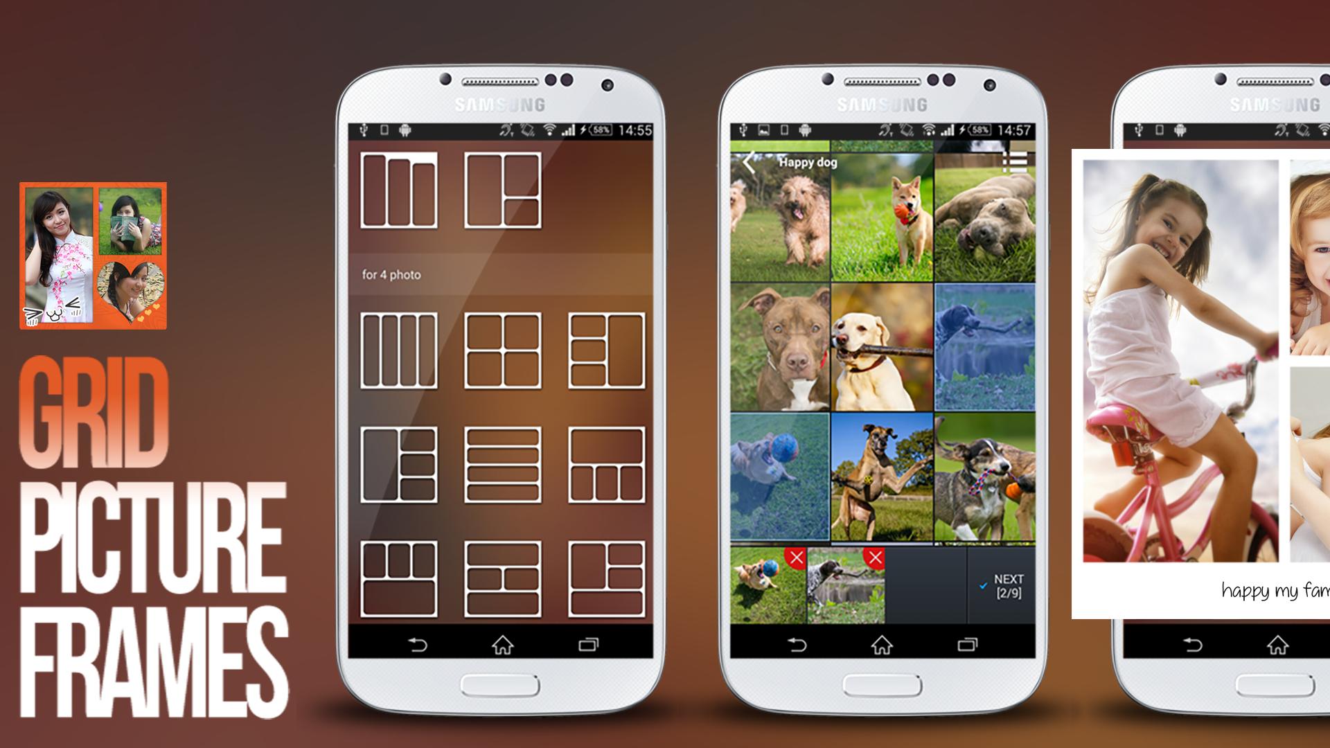 "Grid Picture Frames" offers photo grid styles with more than 200 grid styles with 1 to 9 slots photo
