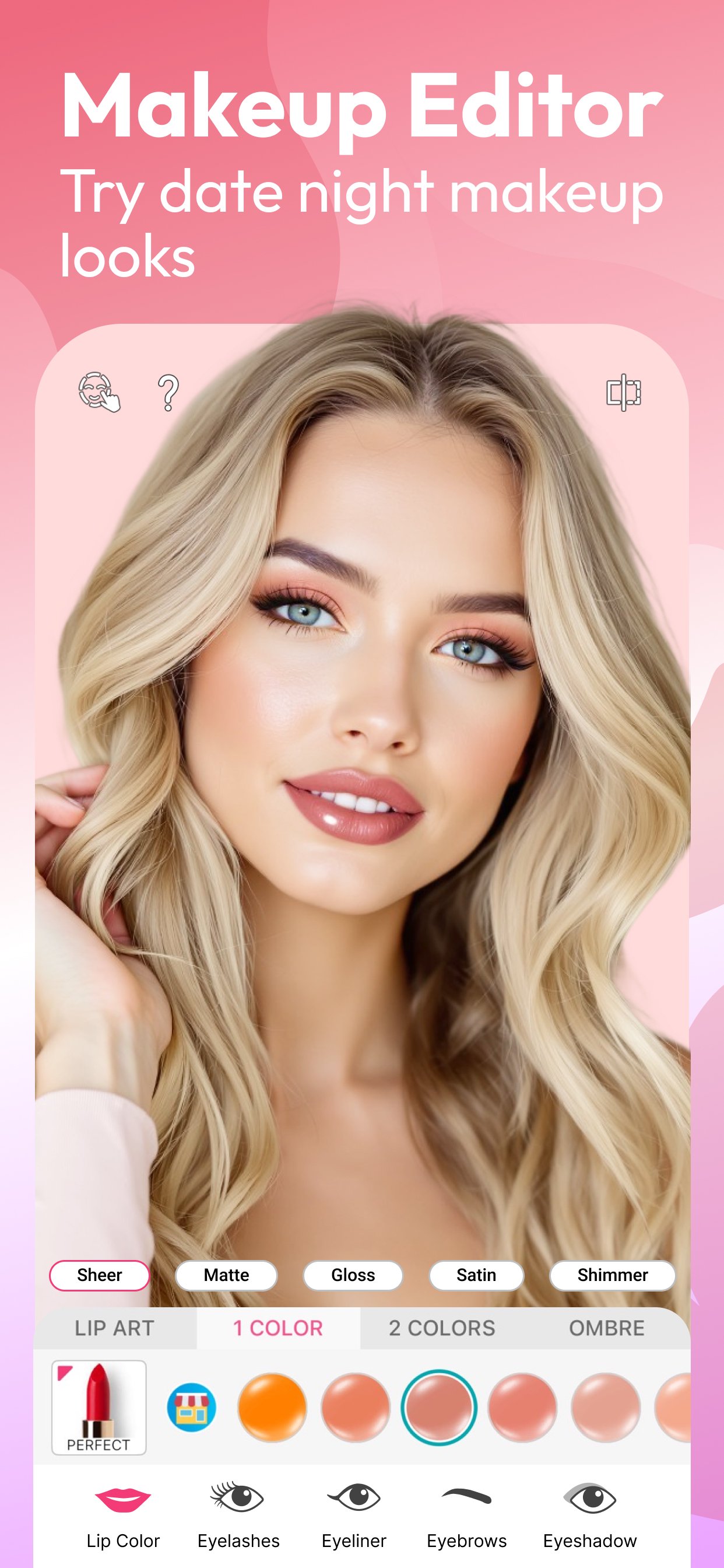 YouCam Makeup offers advanced makeup editor & face retouch tools to smooth skin, refine facial features, whiten teeth, reshape lips & nose, enlarge eyes, and enhance your style with virtual hairstyles and hair colors. From natural beauty touch-ups to glamorous full-face makeovers, you’ll find everything you need for the perfect selfie.