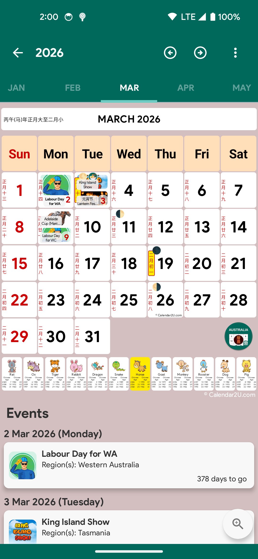 澳洲農曆是澳大利亞人的重要日子。它有所有的節日和文化活動的日期,包括中國的農曆日期。
