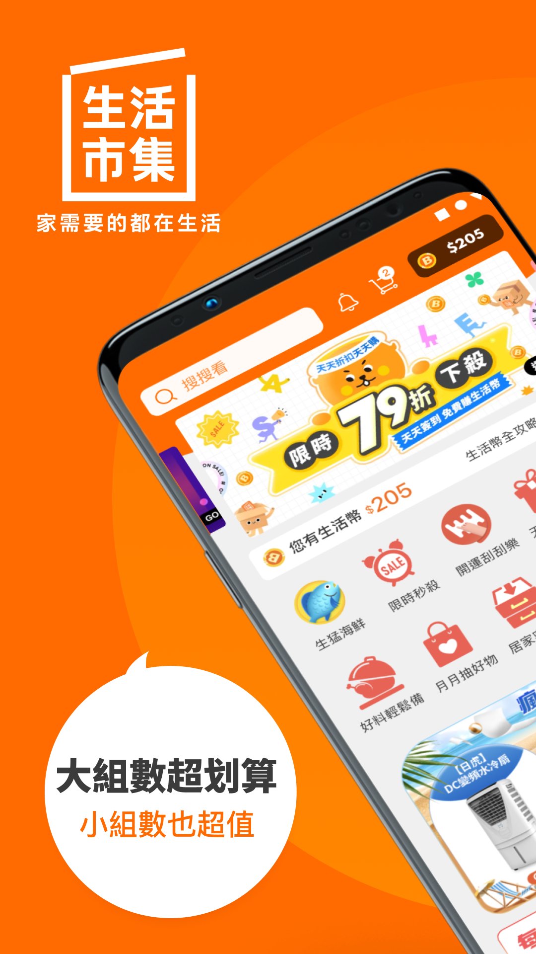 家需要的都在生活市集!我們擁有萬件精心挑選的商品,每日享受最低 69 折的折扣,只需 1 元即可免運費