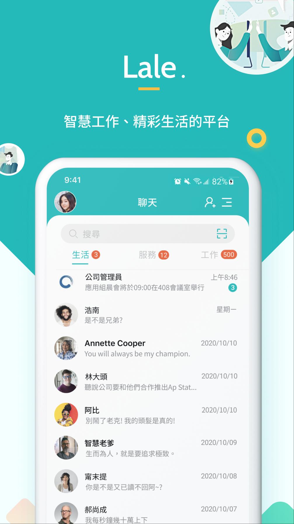 Lale 是一個整合 - 通訊聊天、自媒體經營、線上開店、活動行銷和雲端辦公的應用平台。