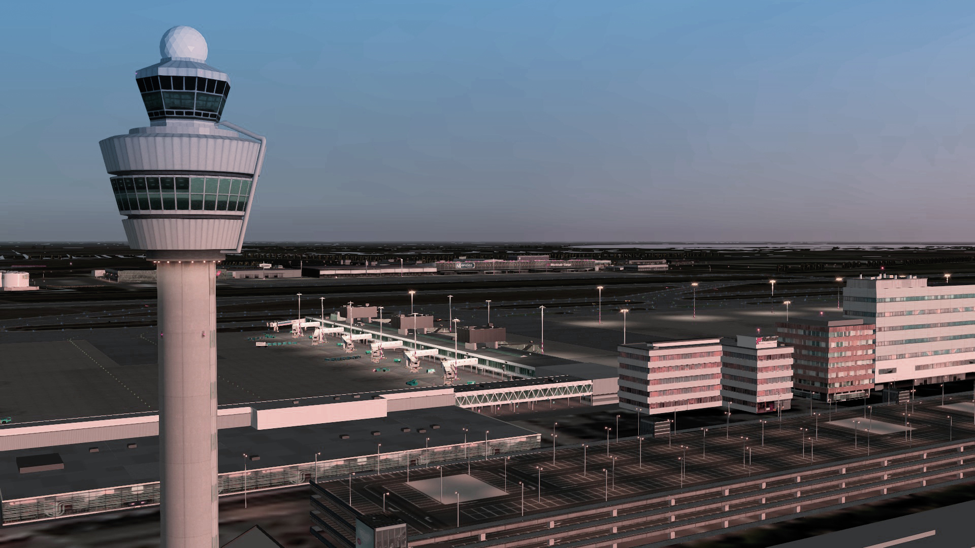 Schiphol is located to the south west of Amsterdam near the suburb of Haarlemermeer. The airport has an average altitude of three meters below sea level and is the “lowest” airport in Europe. The scenery has been modeled to the smallest of details and even features the brand new business terminal on the eastern part of the airport. In addition the numerous static and dynamic objects ensure a lively atmosphere and typical flair of this airport.