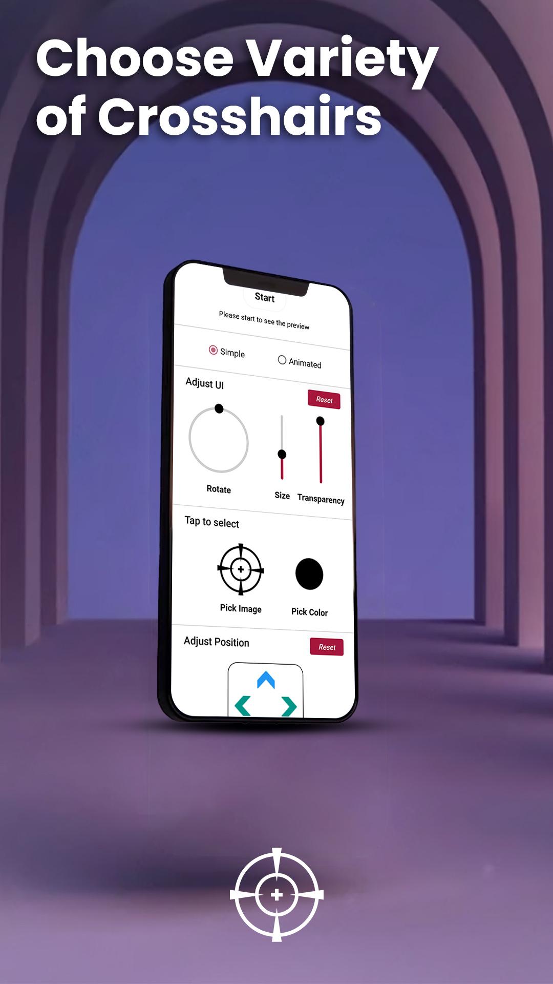 選擇我們的十字準線之一併調整其 UI,如大小、透明度和角度。