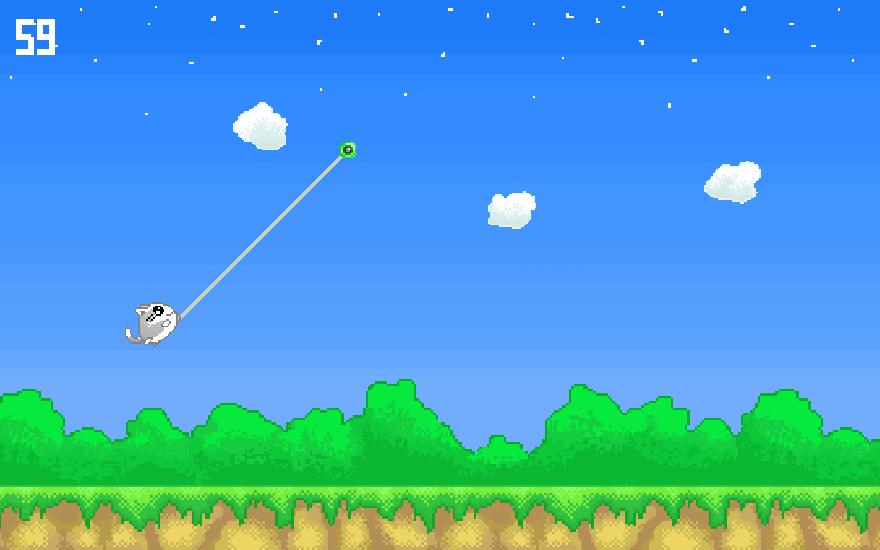 Trò chơi hành động điểm ảnh mà con mèo đang sử dụng yo-yo bám trên những đám mây và nhảy về phía trước.