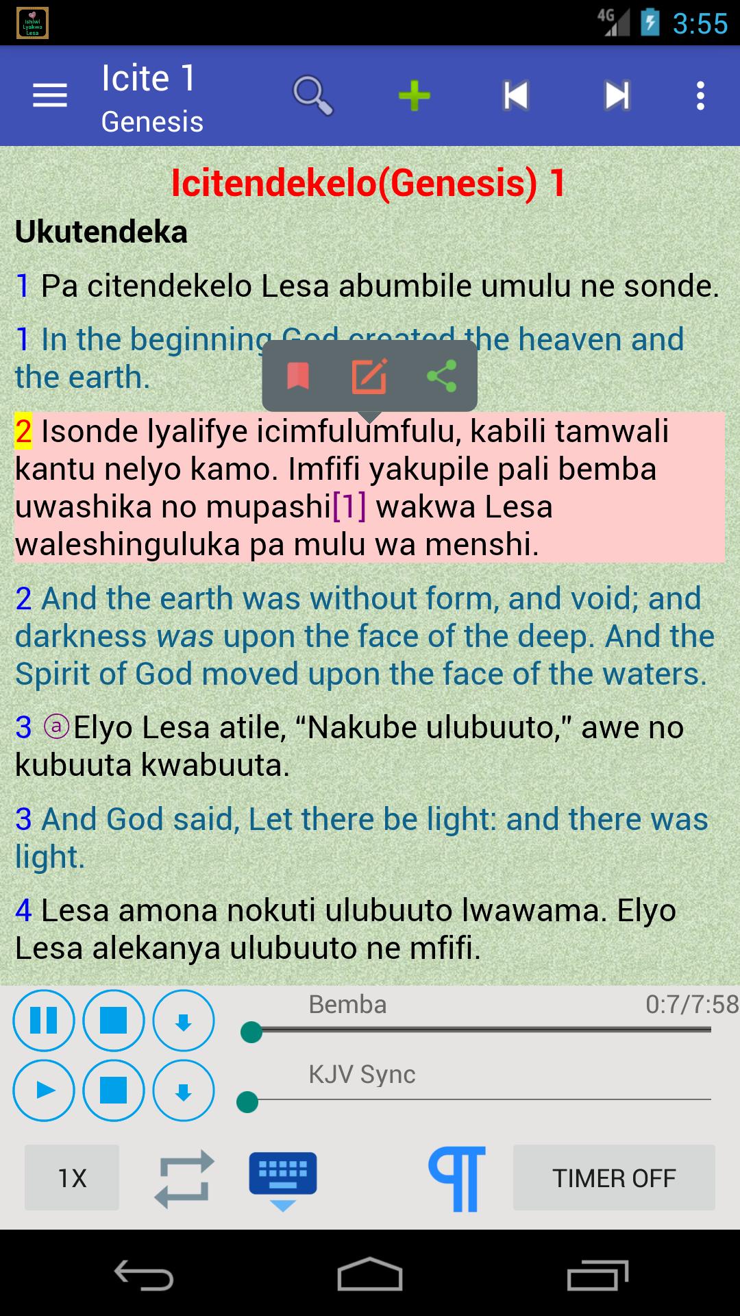 Chúng tôi vui mừng cung cấp Bemba Bible cho các thiết bị Android của bạn. Được cung cấp song song với KJV / NIV / WEB phiên bản tiếng Anh, sử dụng sức mạnh của thiết bị Android cho ngôn ngữ Bemba (còn gọi là ChiBemba, Ichibemba, Icibemba, Chiwemba) ở Zambia và ở Châu Phi.