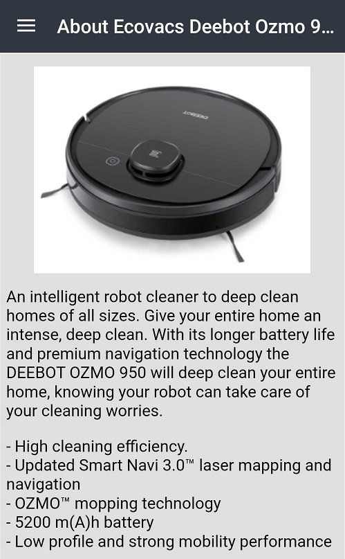 Ứng dụng này là một hướng dẫn nên có sẵn cho bất kỳ ai sử dụng Ecovacs Deebot Ozmo 950. Nó không thuộc về một thương hiệu chính thức.