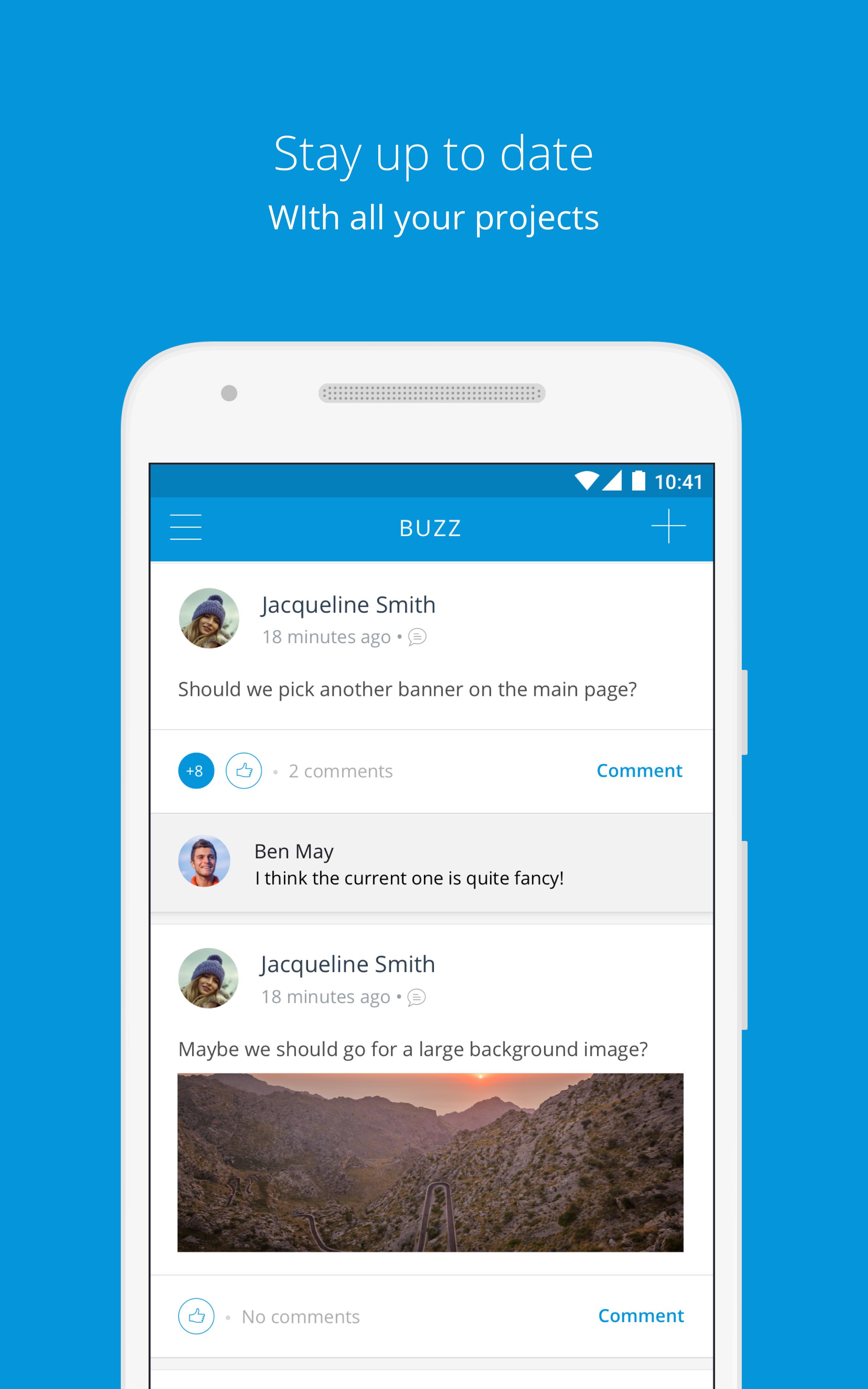 Ứng dụng Mendix kết nối tất cả các bên liên quan trong quá trình giao hàng ứng dụng. Chia sẻ suy nghĩ của bạn trên Buzz, thức ăn gia truyền thông xã hội của dự án của bạn, để thảo luận về các tính năng ứng dụng với các thành viên khác trong nhóm và theo dõi cuộc nói chuyện trong khi bạn đang ngồi trên máy.
