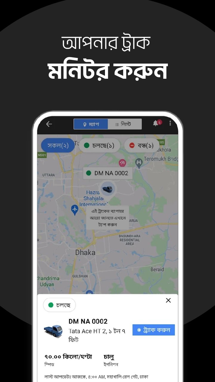 Ứng dụng này được phát triển bằng ngôn ngữ Bangla. Có hàng nghìn yêu cầu về chuyến đi dành cho chủ xe/tài xế xe tải và đại lý vận tải. Các dòng xe tải đa dạng được cung cấp phù hợp với nhu cầu của khách hàng.