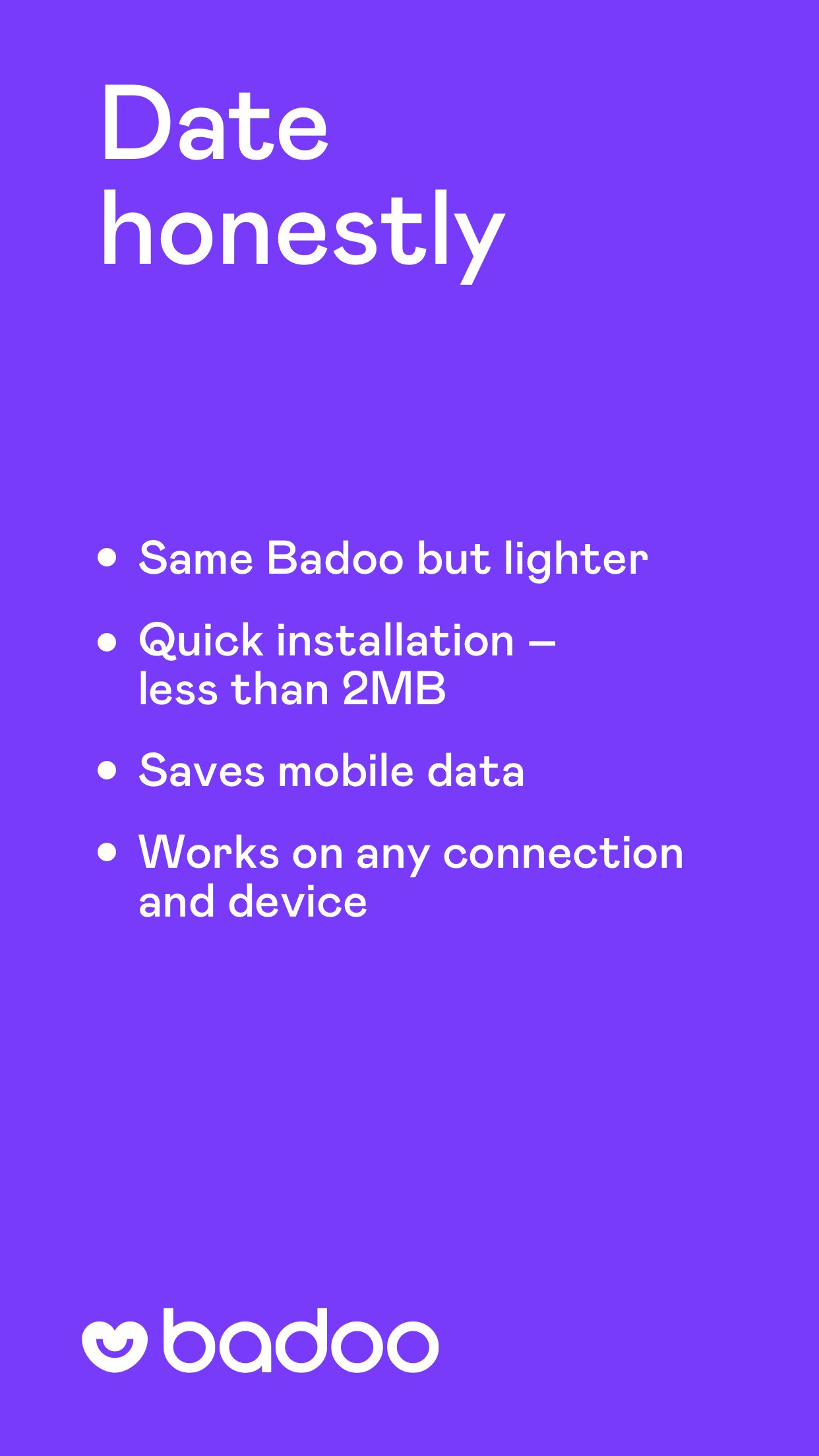 Và giờ đây với Badoo Lite, kết nối của bạn sẽ không ngăn bạn tạo kết nối.